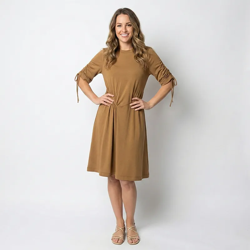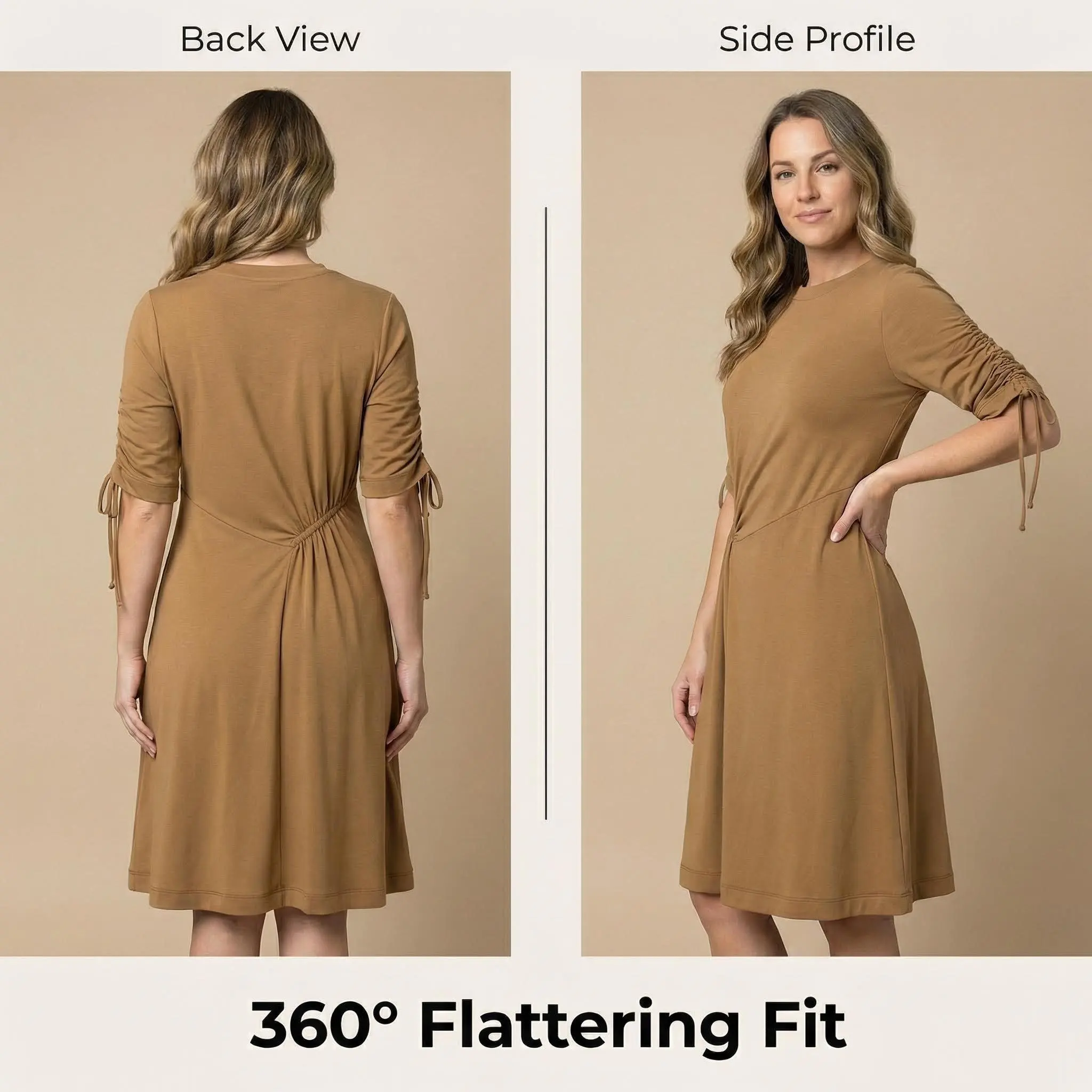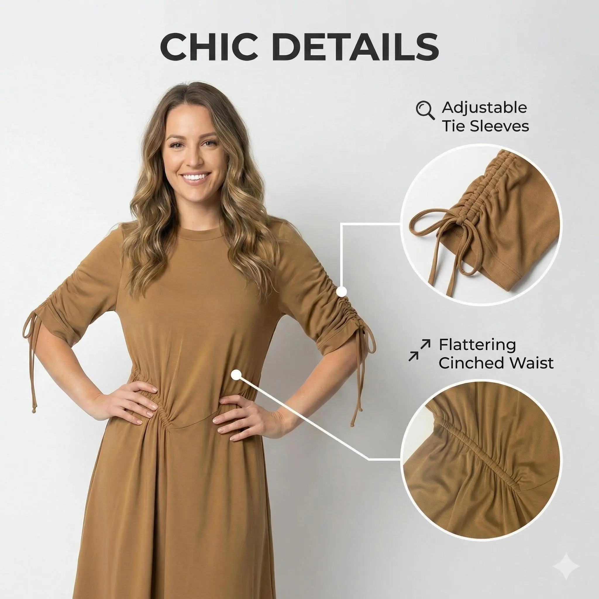 Women's Elegant Casual O-Neck Long Sleeve Dresses 2026 Empire Waistline Ruffles Solid Pattern Breathable Plain Dyed for Spring
