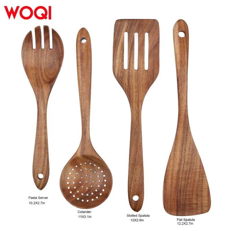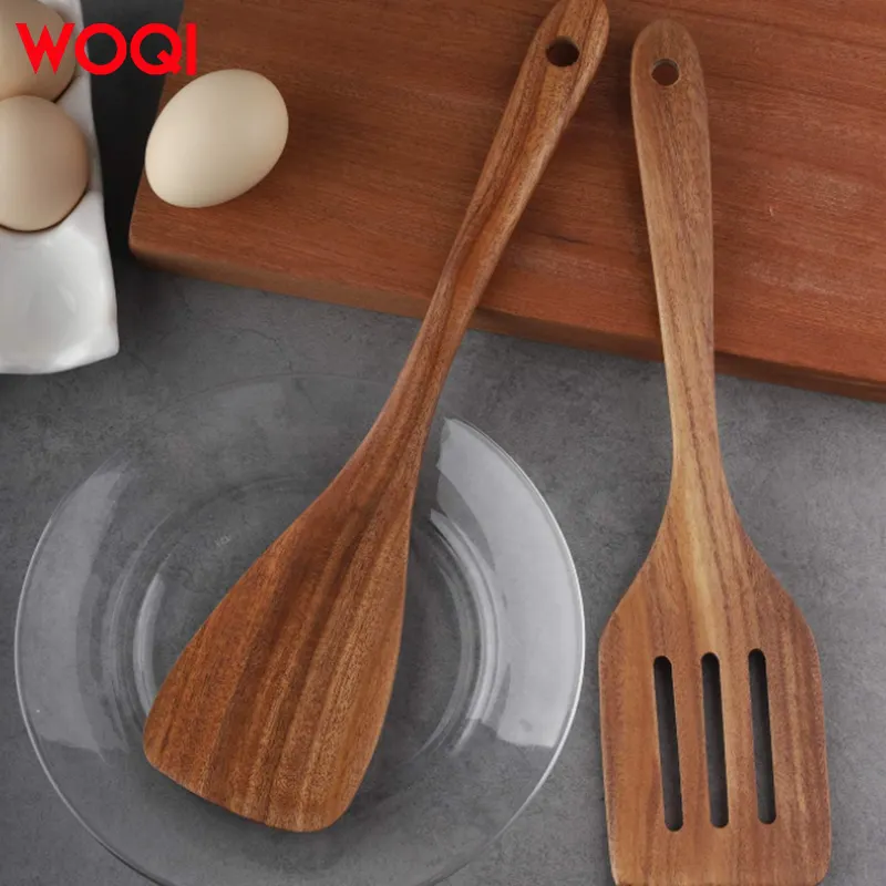 WOQI Factory Wholesale High Quality Acacia Wooden Kitchen Utensils Non-Stick Cooking Tool Sets